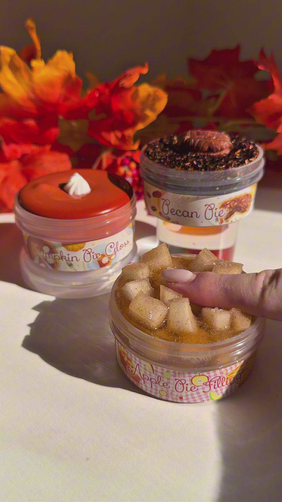 Includes: 3oz Pecan Pie, 3oz Pumpkin Pie Gloss, 3oz Apple Pie Filling